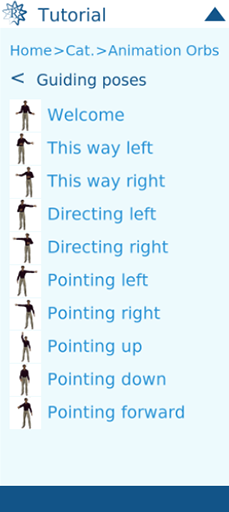 The Guiding poses category has ten different animations useful for using NPCs to direct people, perhaps in conjunction with text signs: