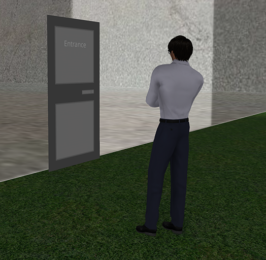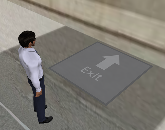 If you wish to exit the Panocube at any time, just walk towards any of the four walls and in the bottom center of the wall you will find the exit: