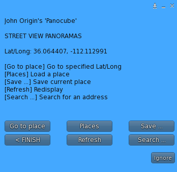 When you select this option, you will be asked for the coordinates of the panorama you wish to view:
