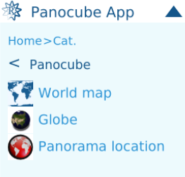 The Panocube has a menu, which can be accessed by clicking the globe in the center of the working platform: