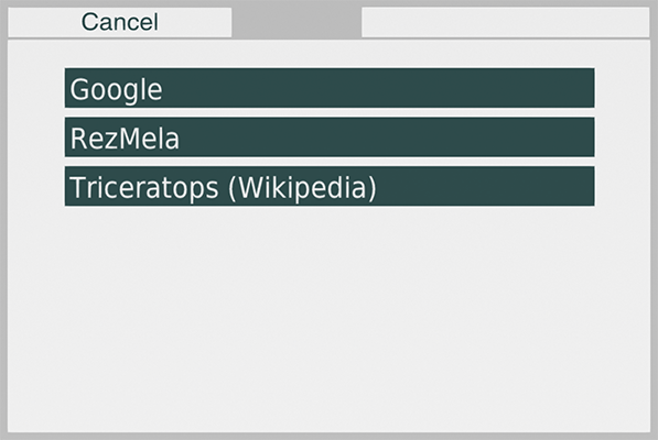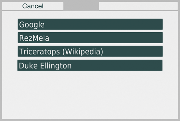 This button lists any bookmarks you might have stored. Clicking any bookmark on this list will take you to that page. The Google search engine is bookmarked automatically.