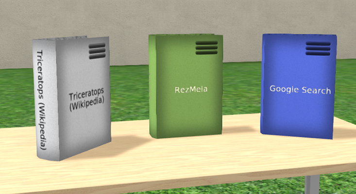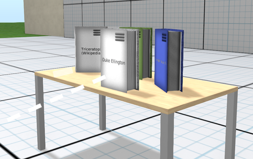 These are objects that look like 3D books, which function as bookmarks. Clicking a Bookmark object will cause the nearest Web Browser object to display the relevant page. So if you have multiple Web Browser objects in a scene, you can group the Bookmark objects with the ones they need to control.