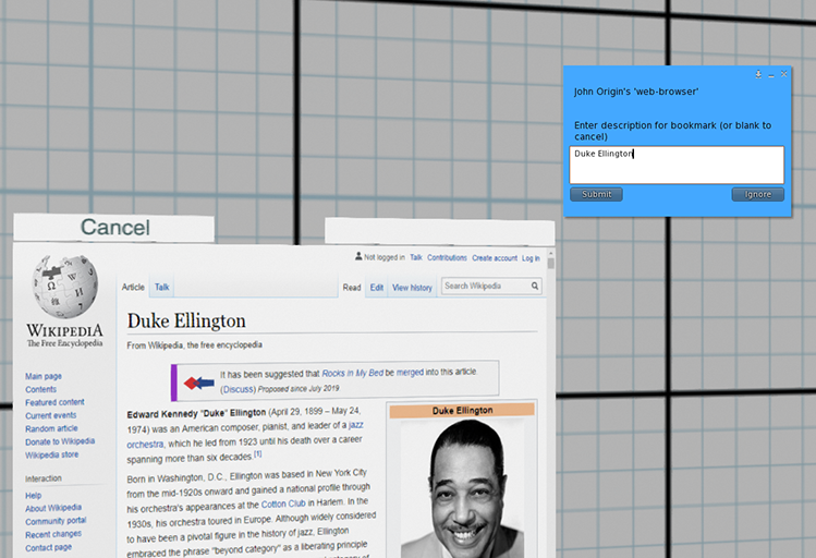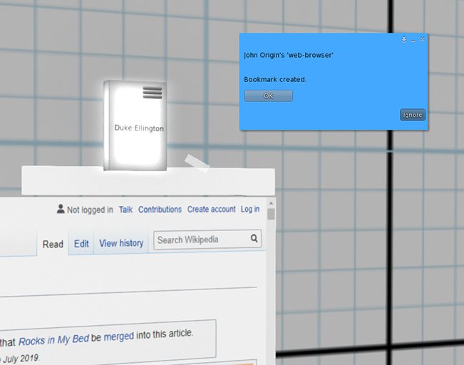 When you have entered a description and clicked Submit, a Bookmark object will appear above the Web Browser and is selected automatically:
