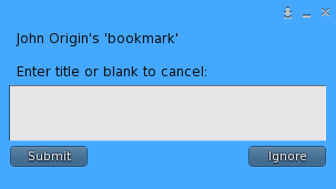 Type or paste in your description, and click the Submit button. If you leave the description empty and click Submit, the operation is cancelled and no bookmark will be created.