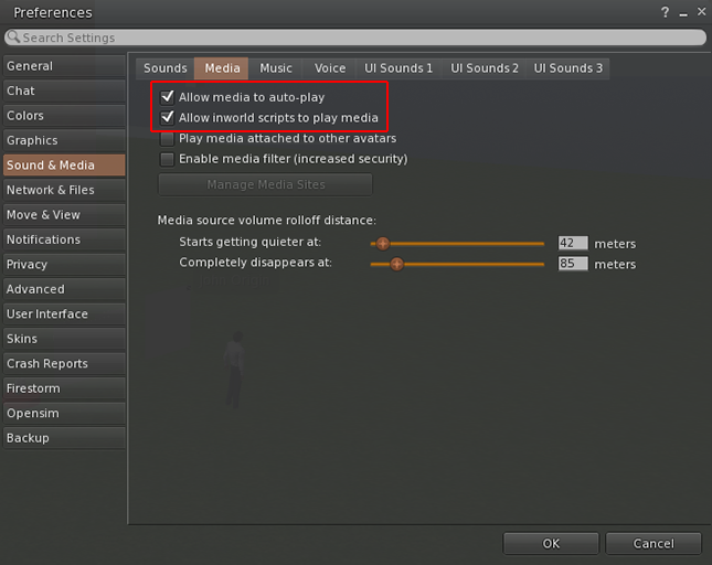 This is for the Firestorm viewer – other viewers will have similar settings but might look somewhat different.